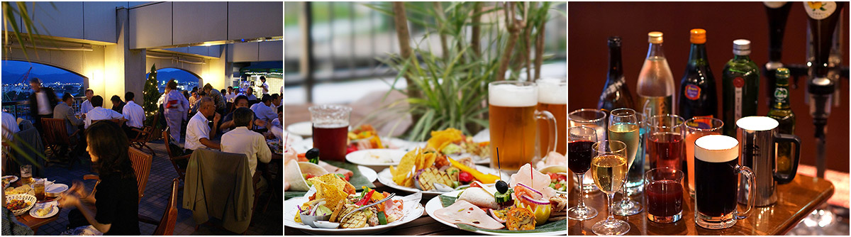 毎年夏の恒例イベント、当ホテル最上階のテラスでバイキング形式のお食事とフリードリンクを楽しむ「屋上ビアテラス」。地上30mの高さから福井市街地を一望する景観と、足羽川からの涼しい風を感じながら飲むビールは格別! お料理もホテルならではの本格メニューをご用意しています。混みあいますので、ぜひお早目にご予約ください。