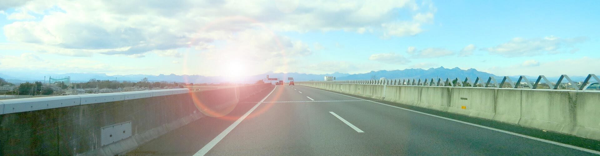 普通車は茶色いビルが見えたら、158号線の真ん中の車線に入って下さい。左奥にホテルが見えます。