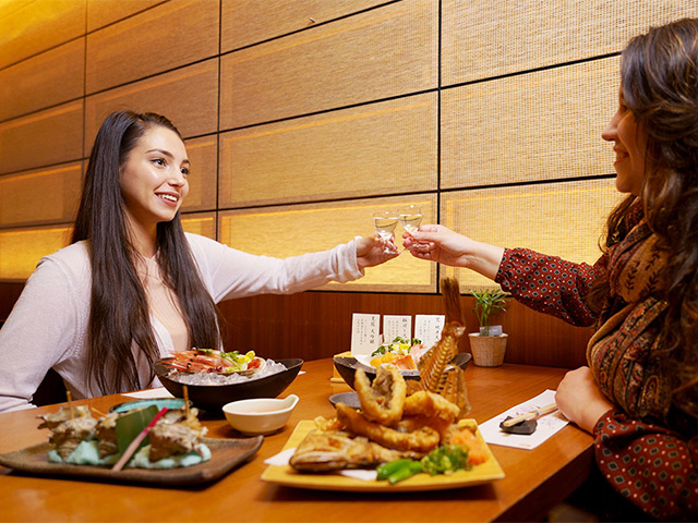 ホテルのある浜町は、かつて水運の要として栄えており、今もなお料亭街として老舗と新店が軒を連ねている。夕食は少し奮発して料亭を訪れてみることに。気の置けない女友達と、福井産の山海の幸を活かした会席料理を味わう。越前焼や越前塗の器でいただくお料理は、見た目にも美しい。米どころ福井の地酒と共に会話も弾む。
